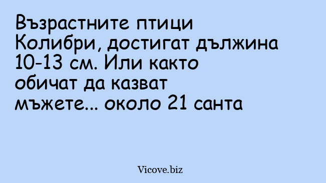 Възрастните птици Колибри, достигат дължина 10-13 см. Или както обичат да казват мъжете... около 21 санта