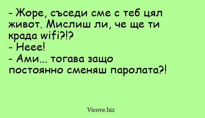 - Жоре, съседи сме с теб цял живот. Мислиш ли, че ще ти крада wifi?!?