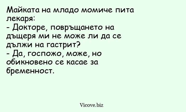 - Докторе, повръщането на дъщеря ми не може ли да се дължи на гастрит?