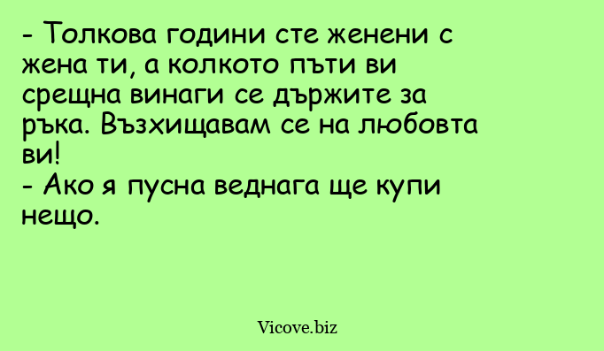 - Толкова години сте женени с жена ти, а колкото пъти ви срещна винаги се държите за ръка. Възхищавам се на любовта ви!