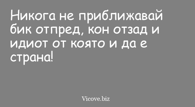 Никога не приближавай бик отпред, кон отзад и идиот от която и да е страна!