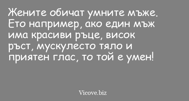 Жените обичат умните мъже. Ето например, ако един мъж има красиви ръце, висок ръст, мускулесто тяло и приятен глас, то той е умен!