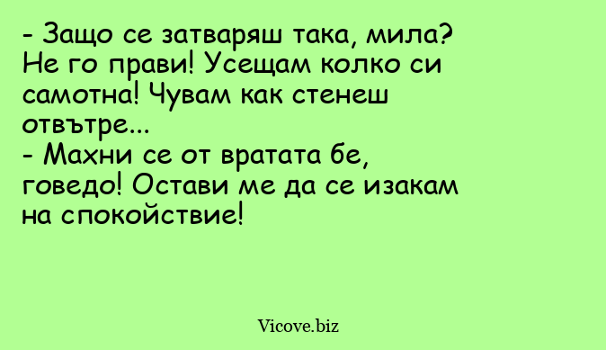 - Махни се от вратата бе, говедо! Остави ме да се изакам на спокойствие!