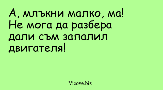 А, млъкни малко, ма! Не мога да разбера дали съм запалил двигателя!