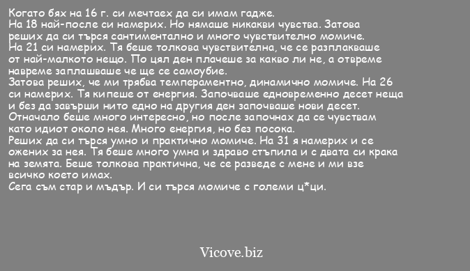 На 18 най-после си намерих. Но нямаше никакви чувства. Затова реших да си търся сантиментално и много чувствително момиче.