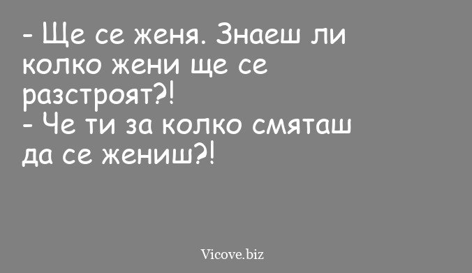 - Ще се женя. Знаеш ли колко жени ще се разстроят?!