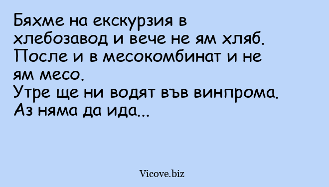 Утре ще ни водят във винпрома. Аз няма да ида...