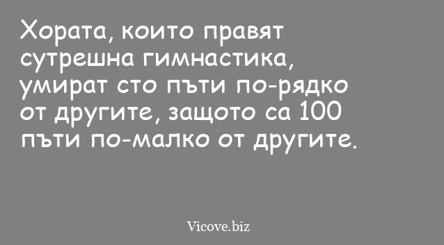 Хората, които правят сутрешна гимнастика, умират сто пъти по-рядко от другите, защото са 100 пъти по-малко от другите.