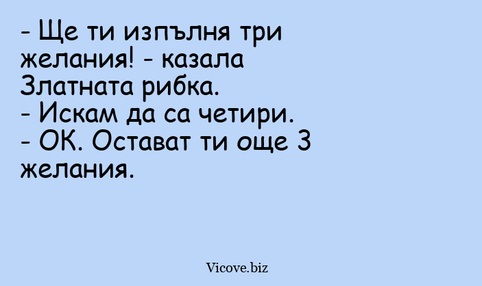 - Хванах златната рибка... Каза ми да си намисля желание...