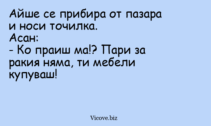 - Ко праиш ма!? Пари за ракия няма, ти мебели купуваш!