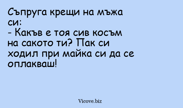 - Какъв е тоя сив косъм на сакото ти? Пак си ходил при майка си да се оплакваш!