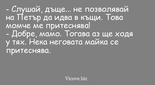 - Слушай, дъще... не позволявай на Петър да идва в къщи. Това момче ме притеснява!