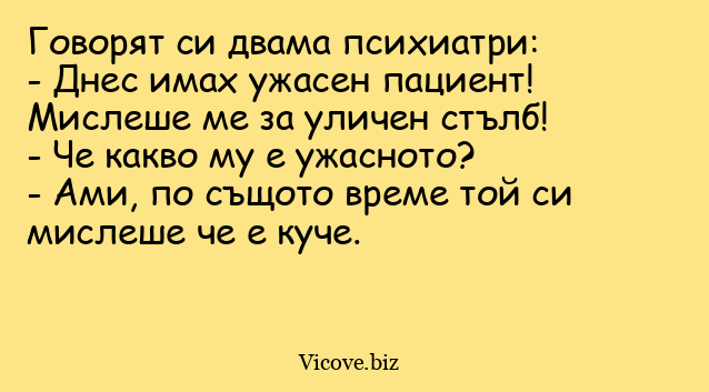 - Днес имах ужасен пациент! Мислеше ме за уличен стълб!