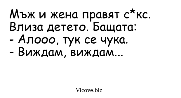 Мъж и жена правят с*кс. Влиза детето. Бащата: