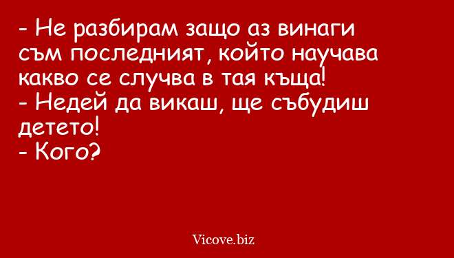 - Не разбирам защо аз винаги съм последният, който научава какво се случва в тая къща!