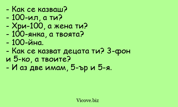 - Как се казват децата ти? 3-фон и 5-ко, а твоите?