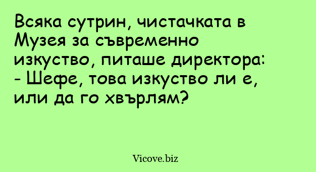 Всяка сутрин чистачката в Музея за съвременно изкуство, питаше директора: