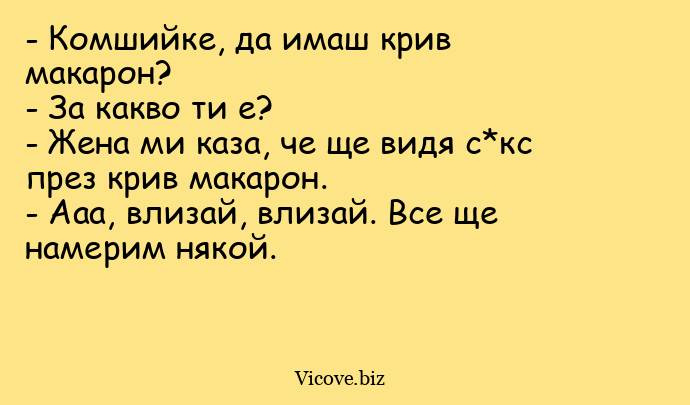 - Жена ми каза, че ще видя с*кс през крив макарон.
