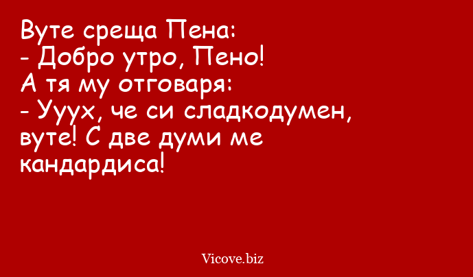 - Ууух, че си сладкодумен, вуте! С две думи ме кандардиса!