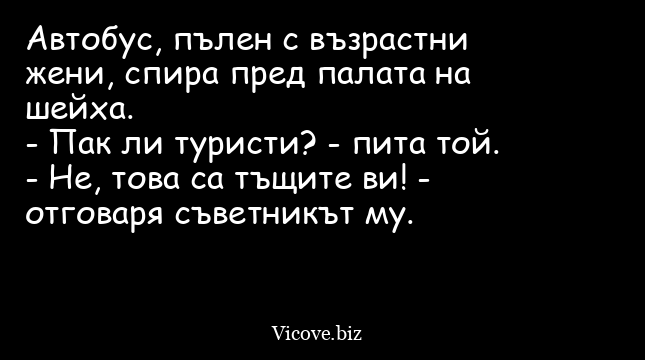 Автобус, пълен с възрастни жени, спира пред палата на шейха.