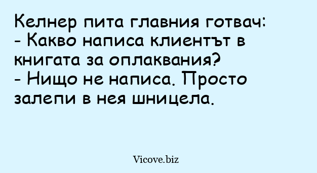 Келнер пита главния готвач: - Какво...