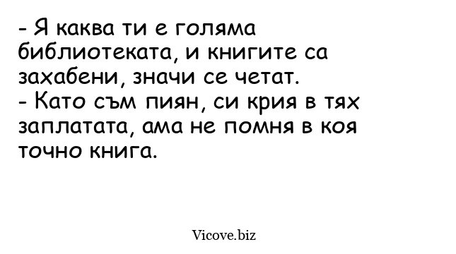 - Като съм пиян, си крия в тях заплатата, ама не помня в коя точно книга.