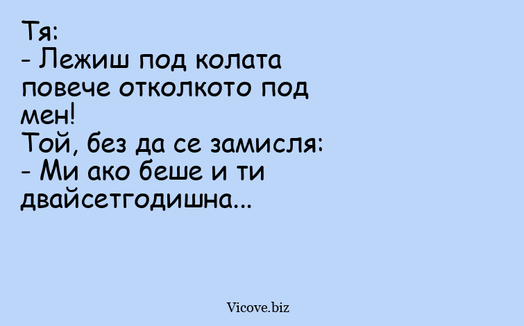 Тя: - Лежиш под колата повече отколкото...