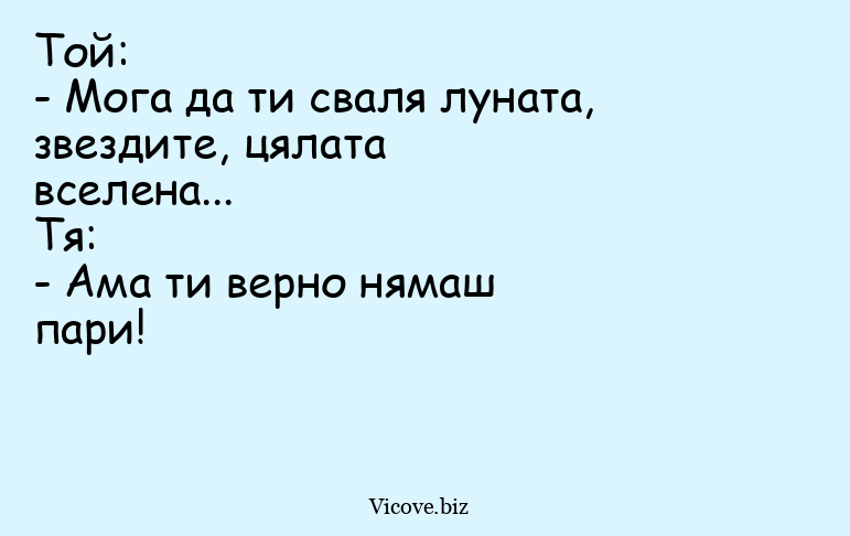 Направих си прическа, гримирах се, сложих си ново бельо и отидох до комшията да искам сол. А там вече беше комшийката от долния етаж, да иска брашно!
