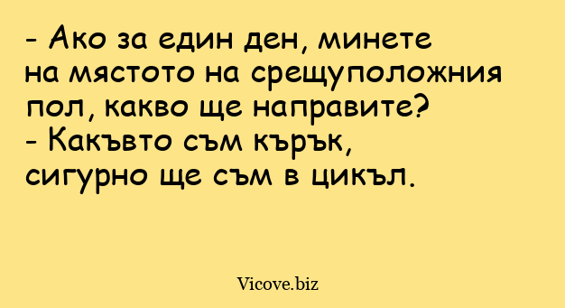 - Какъвто съм кърък, сигурно ще съм в цикъл.