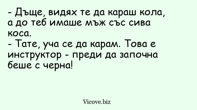 - Тате, уча се да карам. Това е инструктор - преди да започна беше с черна!