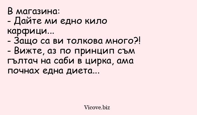 - Вижте, аз по принцип съм гълтач на саби в цирка, ама почнах една диета...