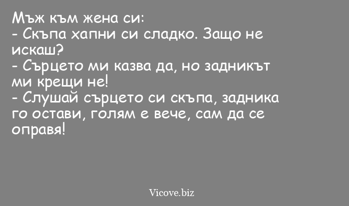- Слушай сърцето си скъпа, задника го остави, голям е вече, сам да се оправя!