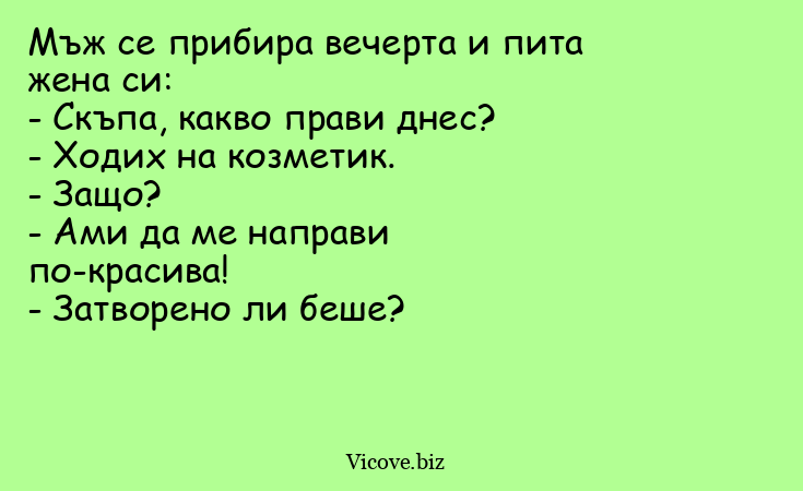 Мъж се прибира вечерта и пита жена...
