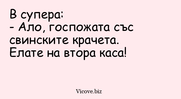 - Ало, госпожата със свинските крачета. Елате на втора каса!
