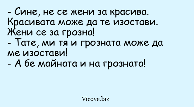- Сине, не се жени за красива. Красивата може да те изостави. Жени се за грозна!