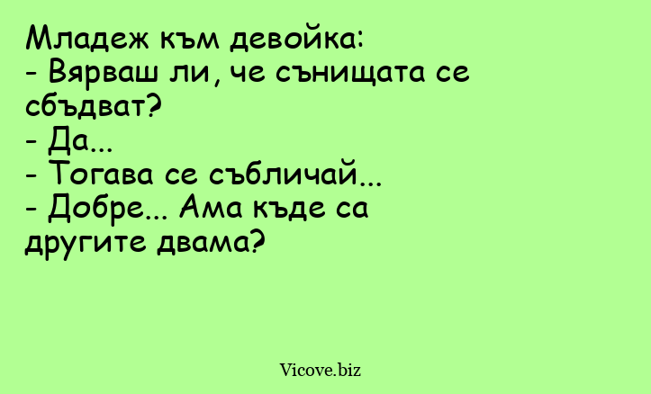 – Мила, знаеш ли какво е казал Бог на красивите жени, когато ги е сътворил?