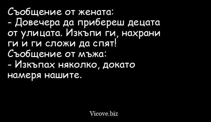 - Довечера да прибереш децата от улицата. Изкъпи ги, нахрани ги и ги сложи да спят!