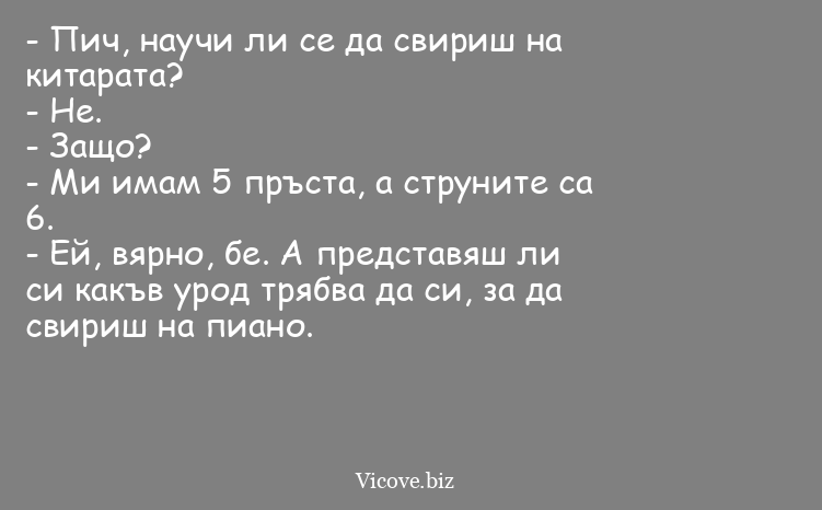 - Ей, вярно, бе. А представяш ли си какъв урод трябва да си, за да свириш на пиано.