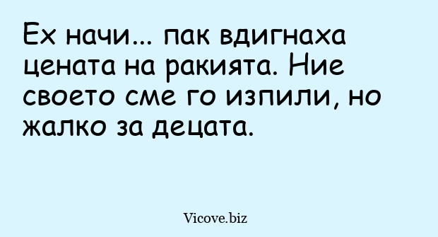 Ех начи... пак вдигнаха цената на ракията. Ние своето сме го изпили, но жалко за децата.