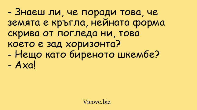 - Знаеш ли, че поради това, че земята е кръгла, нейната форма скрива от погледа ни, това което е зад хоризонта?