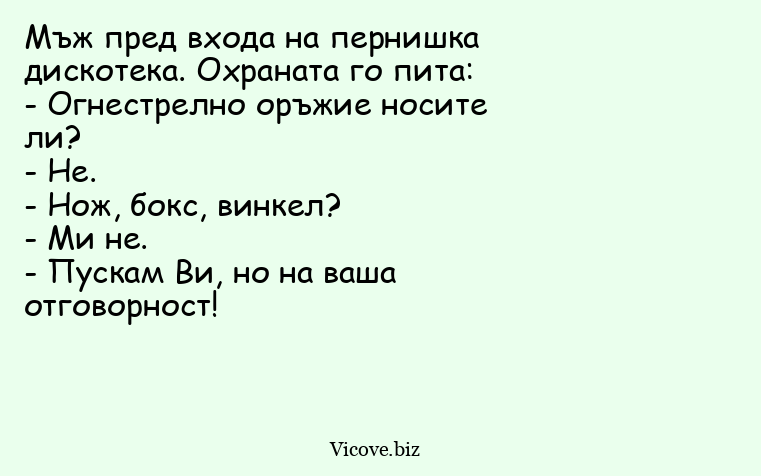 Мъж пред входа на пернишка дискотека. Охраната го пита: