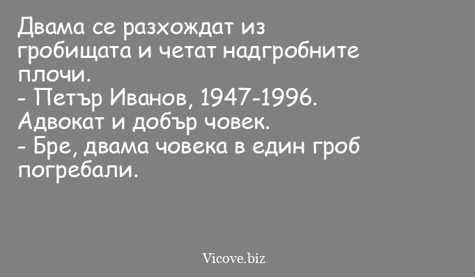 Двама се разхождат из гробищата и четат надгробните плочи.