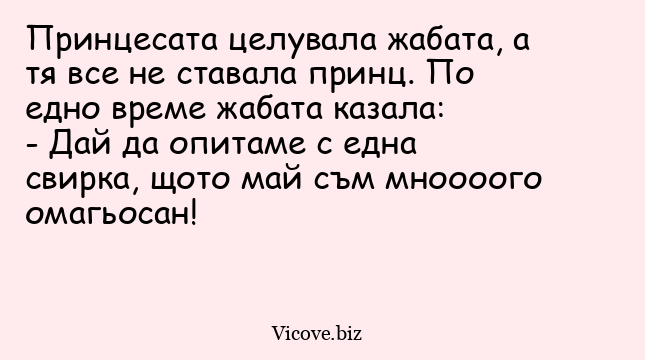 Принцесата целувала жабата, а тя все не ставала принц. По едно време жабата казала: