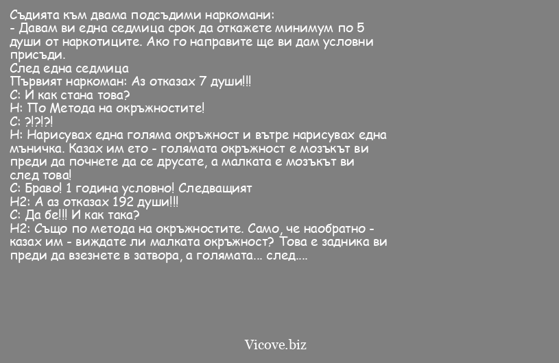 Н2: Също по метода на окръжностите. Само, че наобратно - казах им - виждате ли малката окръжност? Това е задника ви преди да взезнете в затвора, а голямата... след....