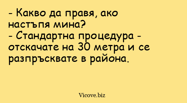 - Стандартна процедура - отскачате на 30 метра и се разпръсквате в района.