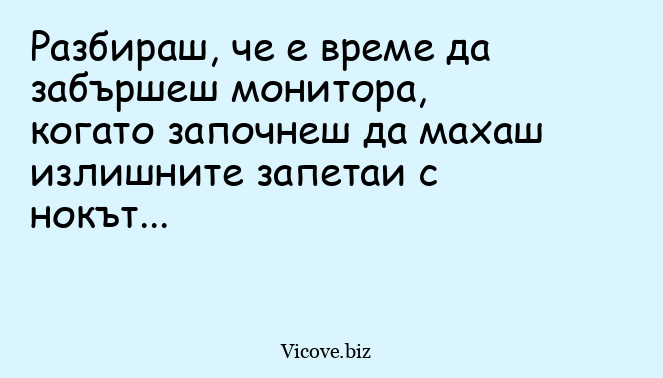 Разбираш, че е време да забършеш монитора, когато започнеш да махаш излишните запетаи с нокът...