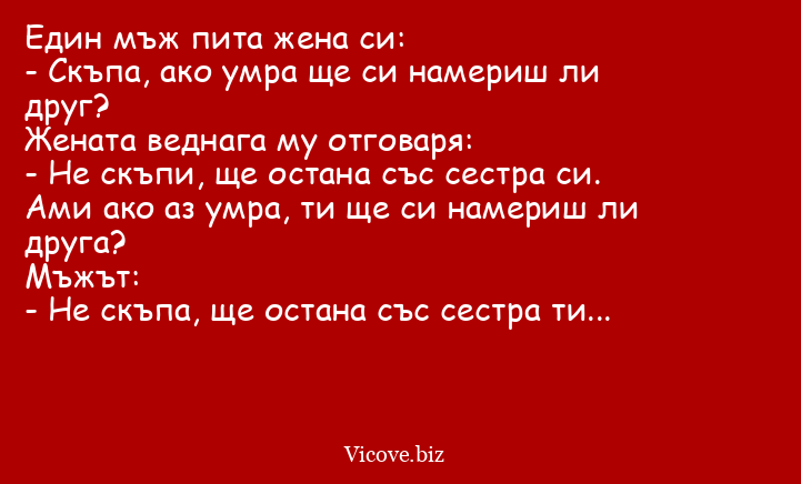 - Не скъпи, ще остана със сестра си. Ами ако аз умра, ти ще си намериш ли друга?
