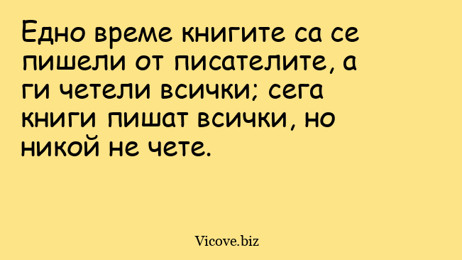Едно време книгите са се пишели от писателите, а ги четели всички; сега книги пишат всички, но никой не чете.