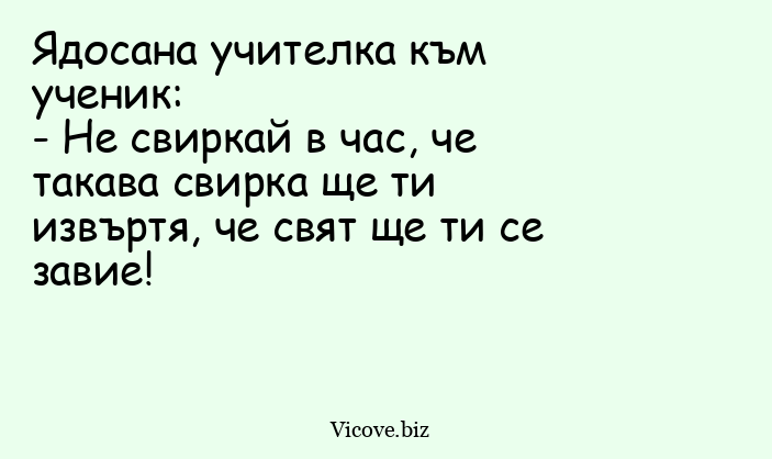 - Не свиркай в час, че такава свирка ще ти извъртя, че свят ще ти се завие!