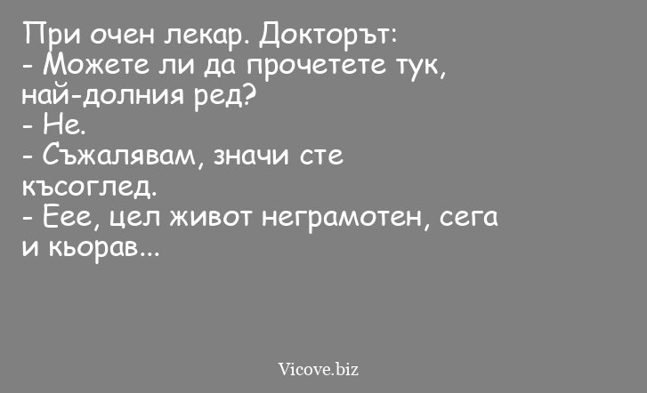 - Докторе, не мога да задоволя жена си. Тя иска по десет пъти на ден.
